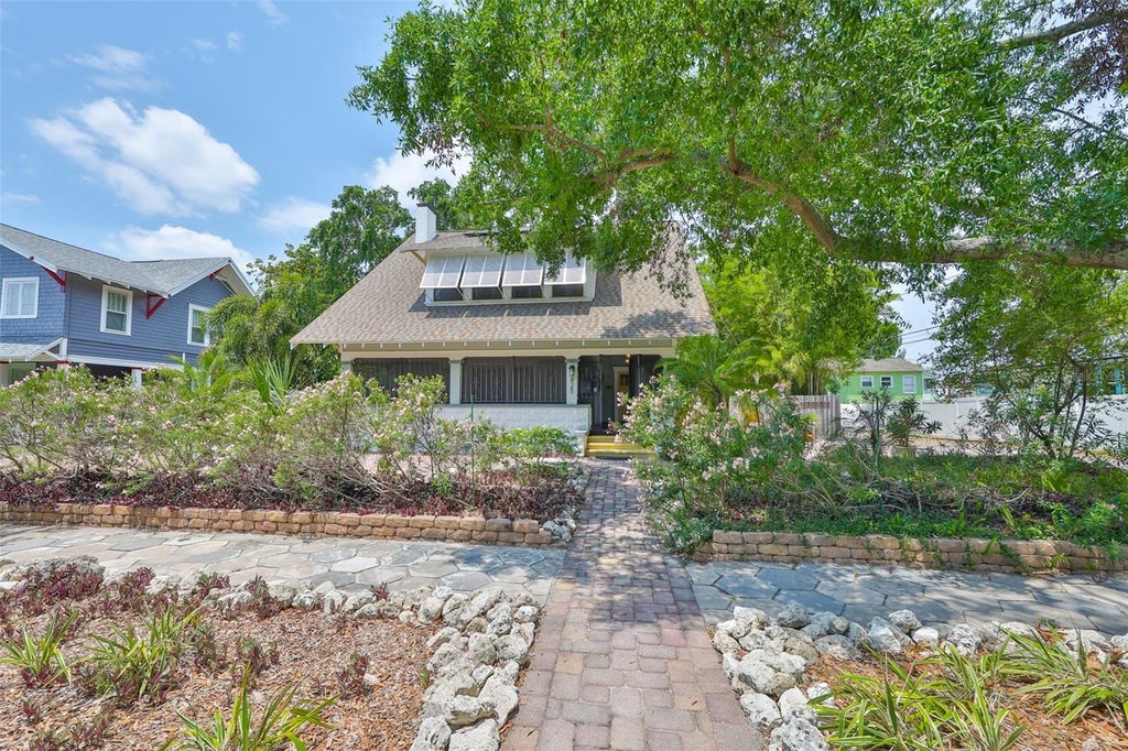 One or more photo(s) has been virtually staged. Located in Old Southeast (OSE), one of St. Pete's best historical communities, this 2384SF 110-year-old Arts and Crafts-style home blends historic charm with modern updates! OSE is a coastal neighborhood known as an Artist Enclave district with brick roadways, hexagon sidewalks and social events--the epitome of Old Florida architecture and living! Home is FIVE minutes to downtown St Pete, THREE blocks from Lassing Park, TWO miles to St Pete Pier & 30 min to downtown Tampa! Step back into time with this thoughtfully updated 4 bedroom home. The intact historical details throughout this 1915 built home include old growth cedar exterior, built-in cabinetry, stained glass, wood flooring, built-in bookcases, curved staircasing, restored historic windows and a fireplace set in the primary bedroom and living room! Modern updates of this home include an updated extended kitchen and fully renovated bathrooms. Kitchen details include: custom soft close cabinetry, built-in designer appliances, oversized walk-in pantry (with additional fridge), a wine chiller & a pot filler over the induction cooktop. Solar panels power this home and are owned FREE & CLEAR with power bills as low as $30 per month for most of the year! Old Florida architecture offers a relaxed setting with the beloved front and rear covered porches that truly are an extension of the indoors! Enjoy the easy southern living of the eastern sunrise on the front porch and the western sunset at the end of the day on the rear porch! The 70'x110' CORNER lot is xeriscape for low maintenance & designed as an extension of the FL lifestyle. Entertain at the firepit, take your shot on the putting/bocce ball green or soak in the sun on the extensive 30'x14' paver patio just steps from the kitchen! IMPORTANT updates: 2022 roof, all new 2006 electrical with 2022 upgrades, new plumbing including connection to the city's lines, 2022 sewer line, 2015/2017 HVAC with Reme Halo air purifier & a tankless water heater! Looking for room to expand or add an ADU? The detached garage is ready for your renovation and remains in its current state to prevent zoning restrictions to a new structure! Hurricane ready home is NOT in a flood zone and this home has had no flood damage ++ has solar battery back-up in case of power loss! The OSE community enjoys Lassing Park, 14+acres of greenspace and a beach just steps from home! It is the ideal place to paddle board, kayak, dog walk, fish, swim or for community connection! Zoned for John Hopkins Middle School-Center for the Arts, Journalism and Gifted Studies magnet school. Home is near the Harborage Marina, USF St Pete Campus + Johns Hopkins All Children Hospital and Orlando Health Bayfront Hospital. The Gulf shoreline and best FL beaches are approx 20 minute's drive West or take the SunRunner transportation to get from 'Burg to St Pete BEACH!
