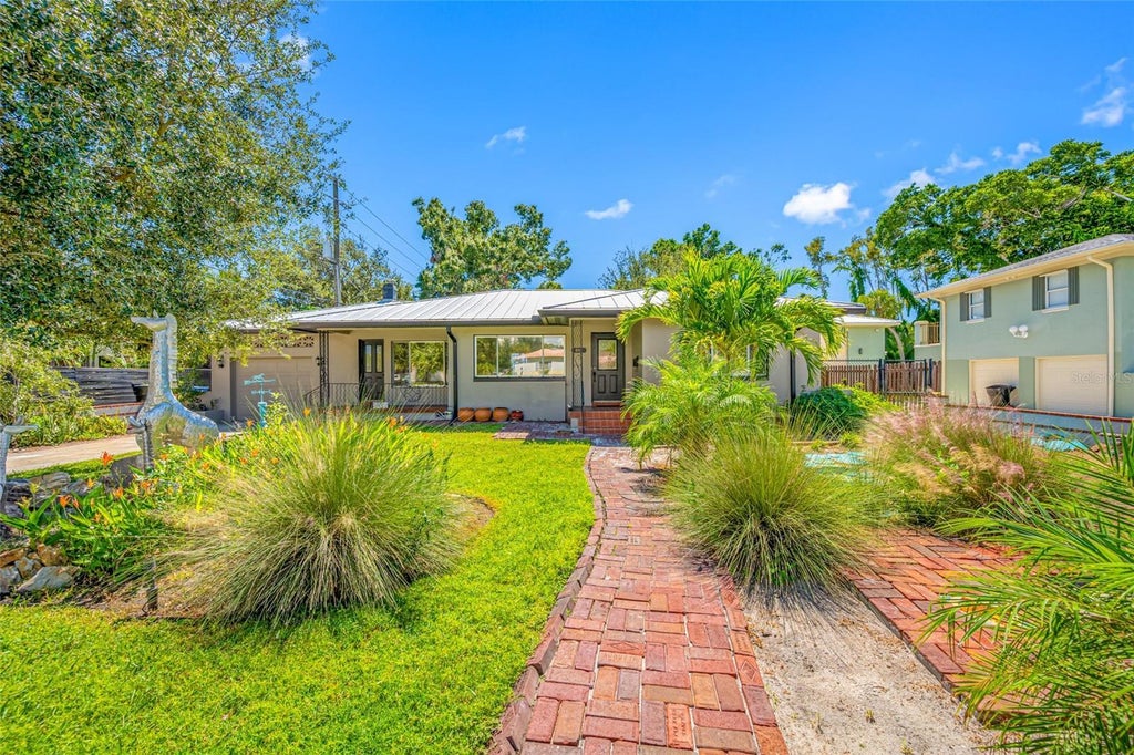 One or more photo(s) has been virtually staged. 5 minutes from the beach but flood insurance not required! This historical home is located in the perfect spot for you to enjoy the beaches of Pinellas County with a mere 5-minute drive to St. Pete Beach and a short 9-minute drive to Treasure Island Beach. And, with this huge lot (.33 acres!) with alley access, you have room to store your boat, water toys and even your travel trailer right on your property if you so choose! The 1305 square foot home is well designed by providing 3 ample bedrooms, two full bathrooms, a 1 car garage for parking or storage and lots of windows to keep the home light and bright. Both bathrooms have been modernized for peace of mind, and the kitchen has concrete countertops, an island and wood cabinets with plenty of storage. The kitchen door leads out to the covered brick patio, and the yard has endless possibilities, from building an in-law unit, tiny house or ADU (check with the city on regulations), installing a luxurious pool, or just watching your doggies play. A large workshop with electricity and air conditioning is out there too! With crown molding, architectural cutouts, polished original hardwood floors, new paint, updated period style lighting and even a front porch to enjoy Florida living. Old Pasadena is home to many sumptious homes and you can enjoy neighborhood walks on mature tree lined streets and be surrounded by many of the historical Spanish Mediterraneans of St. Pete. Walkability is a big factor too, with local restaurants, grocery and other amenities a short walk or an even shorter drive away. If Airbnb, an office with a separate entrance or a tenant is part of your plan, this home also has one bedroom with a separate entrance off the front, ensuring privacy from the main home. A metal roof was installed in 2015. Ductwork has been updated, new PVC plumbing including the sewer line and a tankless water heater. Not much to do here except move in and add your personal touches! Don’t miss this one!
