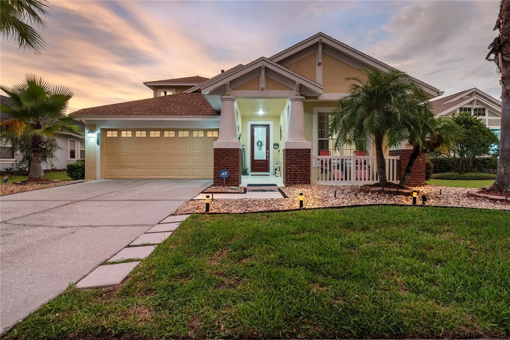 Welcome to the dream of Florida living in the guard-gated, resort-style community of Grand Hampton in New Tampa. This recently upgraded 2,500 sq ft. 3-bedroom, 2-bath pool home sits on a quiet cul-de-sac with tranquil water views. The eat-in kitchen features a breakfast nook, granite countertops, tile backsplash, and 2022 appliances. Enjoy marble flooring throughout, laminate in all bedrooms (no carpet), and a spacious upstairs loft perfect for an office, media room, or potential guest suite. The large master suite is split from the secondary bedrooms and includes a walk-in shower, soaking tub, dual vanities, and a walk-in closet. Triple-slider glass doors open to a screened pool area with stunning views of the water. Additional features include a 2-car garage with shelving, an extended driveway (capable of accommodating 2–4 cars), new landscaping, and a sectional sprinkler system. Major upgrades: new electric pool heater & pump (2025), roof (2024), HVAC (2023), appliances (2022), and water heater (2020). HOA includes full lawn care, 1-gig internet, and exterior painting every 5 years (next in 2027). Community amenities include 2 pools (resort-style with waterslide + Olympic lap pool), tennis & pickleball courts, fitness center, clubhouse, playgrounds, and walking trails. Move-in ready and a must-see!