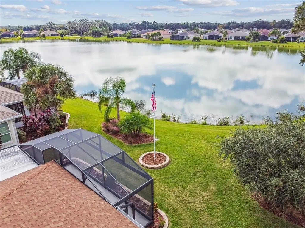 STUNNING CABELLA MODEL WITH BREATHTAKING WATER VIEWS! **See the FULL LENGTH 3D MATTERPORT VIDEO on Tour Link 1. ** Located in the desirable Treviso neighborhood of Solivita, this beautifully appointed home features 2 bedrooms, 2 baths, and a versatile DEN. Elegant CROWN MOLDING and TRAY CEILINGS add a touch of sophistication and style to the open, inviting floor plan. Step into the living room and take in the direct sight lines to the gorgeous water views from your EXTENDED, COVERED, and screened lanai with WIDE SCREEN ENCLOSURES....the perfect place to relax and unwind. The space features 18" CERAMIC TILE flooring, providing easy maintenance throughout. The kitchen is a chef’s delight, showcasing EXTENDED countertops with QUARTZ surfaces, a glass mosaic backsplash, and 42-inch cabinets with light rails and the convenience of DRAWERS for easy access. Stainless steel appliances and an extended island with BREAKFAST BAR make this space both functional and inviting, while a closet pantry provides plenty of additional storage.The PRIMARY SUITE features luxury vinyl plank flooring, an ENSUITE BATH with a walk-in shower, DAUL SINKS, and a large DRESSING ROOM/WALK-IN CLOSET offering ample space and organization. The second bedroom, located at the front of the home, includes an adjacent full bath with a ROLLING GLASS SHOWER ENCLOSURE, providing comfort and convenience for guests. The den features PLANTATION SHUTTERS and can easily serve as a media room, home office, or hobby space, adding flexibility to suit your lifestyle. The extended lanai can be accessed through triple sliding doors and offers PANORAMIC WATER VIEWS with a tree-lined landscape on one side, creating the perfect spot to relax with friends while enjoying the gentle breezes. Additional upgrades include rounded corners, LEADED GLASS entry door, DUAL-PANE windows, and a CENTRAL VACUUM system. The two-car garage features EPOXY FLOORING, pull-down attic stairs, an overhead storage rack, and has been pre-plumbed for a water filtration system. The laundry room includes a washer and dryer, upper cabinets for added storage, and a convenient UTILITY SINK. This home has it all — beautifully move-in ready and located in an award-winning, active adult community offering the resort-style lifestyle you’ve been waiting for! Not to mention its convenient location near the Village Center, where you can easily enjoy dining, entertainment, and all the wonderful amenities Solivita has to offer. The HOA: - maintains the LANDSCAPING & IRRIGATION systems in the common areas as well as at individual homesites - maintains the roads throughout the community - PROVIDES SECURITY with gate guards and mobile patrols including the Polk County Sheriff - allows AUTOMATED GATE ACCESS for residents via license plate readers - provides residents with Fiber Optic Internet & TV service.***Poinciana Lakes Plaza is a MAJOR NEW SHOPPING CENTER that opened directly across from the Solivita Main Gate in Summer of 2024. It features Sprouts Grocery, TJ MAXX, Ross, Burlington, Rack Room Shoes, 5 Below, Ulta, Outback, First Watch, 5 Guys, Urgent Care, Dentist, TD Bank, Petco & Hair Cuttery PLUS MORE TO COME.***